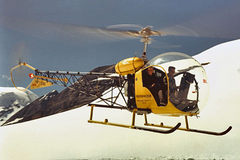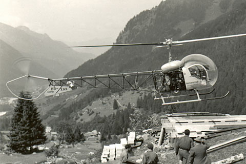 | HB-XAK Bell 47G at work in Löbbia, Bergell - Photo by H.B.Burgunder via Roland Küng © Aug-55 | HB-XAK Bell 47G at work in Löbbia, Bergell - Photo by H.B.Burgunder via Roland Küng © Aug-55 |