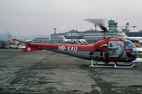 HB-XAU of Heliswiss in new colors at Wangen-Lachen - Photo Flugarchiv Graubünden © 1970 |