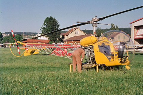 HB-XAV of Heliswiss at Lausanne-Blécherette - Photo collection Werner Häuselmann © 1957 | HB-XAV of Heliswiss at Ochsenboden GR - Photo Flugarchiv Graubünden © 23-Mar-58 |