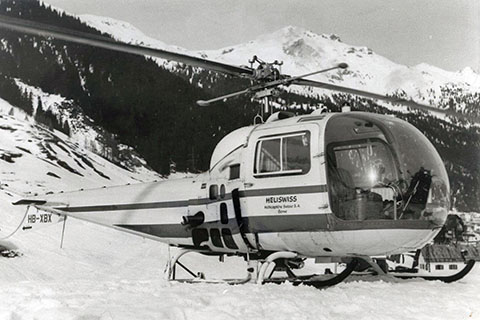 HB-XBX of Heliswiss in a garden at Boll - Photo by H.B.Burgunder via Roland Küng © 1964 | HB-XBX of Heliswiss somewhere in Graubünden - Photo Flugarchiv Graubünden © 1964 |