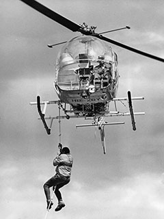 | HB-XBY of Eliticino presented to the public at Bellinzona - Photo Heli-Archive Bazzani © Oct-65 | HB-XBY with Sigi Stangier and Artur Müller during a rescue flight - Photo Heli-Archive Bazzani © 1966 |