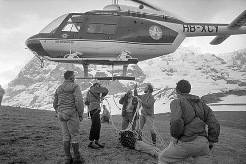 HB-XCY of Air Zermatt - Photo Flugarchiv Graubünden © 1971 | HB-XCY of Air Zermatt during a rescue exercise at Eigergletscher - Photo ETH-Bibliothek Zürich © 11-May-71 |