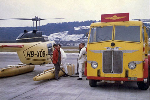 HB-XDB of Heliswiss named Wilhelm Tell at Bern-Belp - Photo by Paul Schüpbach © Sep-71 | HB-XDB of Heliswiss in West Africa named "Wilhelm Tell" - Photo Archiv Pierre Fuellemann © 1972 |