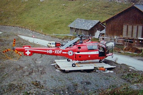HB-XDF of SRFW operated by Heliswiss at Chur hospital - Photo by Roland Küng © 1972 | HB-XDF of SRFW operated by Heliswiss at Bern-Belp - Photo by Paul Schüpbach © Jun-73 |