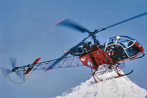 The 1st swiss Lama HB-XDI of Air Zermatt at Aeschi - Photo Archiv Hans Zurniwen © Mar-81 | HB-XDI of Air Zermatt hovering at Rothornhütte - Photo Archiv Hans Zurniwen © Aug-84 |
