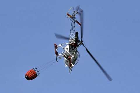 HB-XDN of Eliticino diving down to pick up a load of water - Photo by Markus Herzig © 23-Mar-96 | HB-XDN of Eliticino SA at Cimetta in new colors - Photo by Mario Bazzani © 1-Mar-98 |