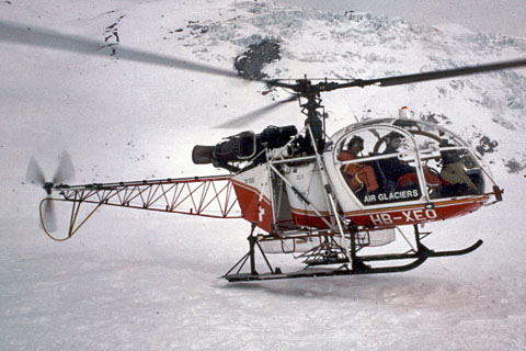 | HB-XEO of Air-Glaciers SA fresh delivered at Sion - Photo collection Stefan van Ingelgom © 1975 | HB-XEO of Air-Glaciers SA up in the mountains - Photo by Egon In-Albon © 1990s |