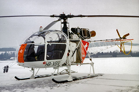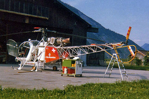 HB-XGV of Heliswiss at Bern-Belp - Photo by Paul Schüpbach © Feb-78 | HB-XGV of Heliswiss at Domat-Ems - Photo Archive Marco Schmid © 1979 |