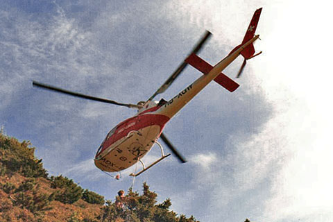 | HB-XGW of Linth Helicopter at Bex - Photo by Daniel Burgunder © Aug-80 | HB-XGW of Heli-Linth working at Schönmad near Schwanden - Photo by Daniel Menzi © Sep-83 |