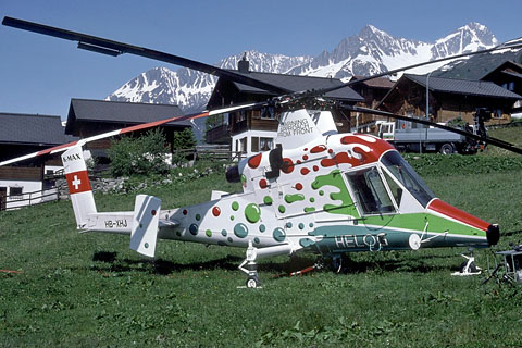 HB-XHJ of Helog at the Heli Expo Las Vegas - Photo Archive Michael Mau © Feb-95 | HB-XHJ of Helog at Sedrun - Photo by Markus Herzig © 20-Jun-95 - MHP |