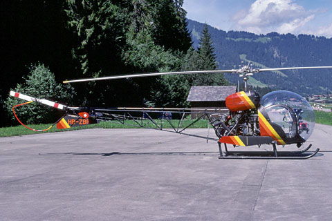 | HB-XIF of Helitrade AG at Bern - later also registered HB-ZBF - Photo by Anton Heumann © 9-May-79 | Former HB-XIF as HB-ZBF of Joachim Kamp at St.Stephan - Photo by Markus Herzig © 15-Mar-99 |
