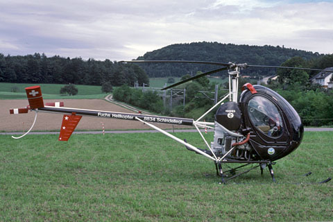 | HB-XKX of Fuchs Helikopter at Zeiken - Photo by Werner Häuselmann © 8-Sep-85 |