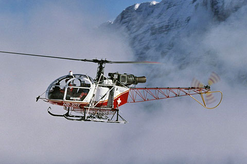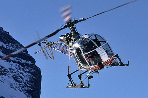 HB-XOY of Air Glaciers approaching Lauberhorn - Photo by Markus Herzig © 17-Jan-98 - ANET | HB-XOY of Air Glaciers departing from Lauberhorn helipad - Photo by Markus Herzig © 15-Jan-00 |