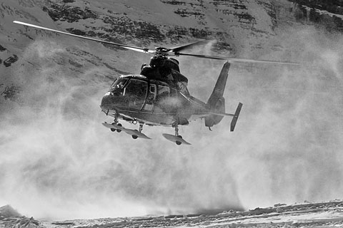 | HB-XPE approaching Lauberhorn with VIP guests - Photo by Markus Herzig © 15-Jan-00 - MHP | HB-XPE guided to a save landing at the Lauberhorn - Photo by Markus Herzig © 15-Jan-00 - ANET |