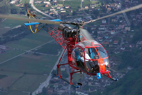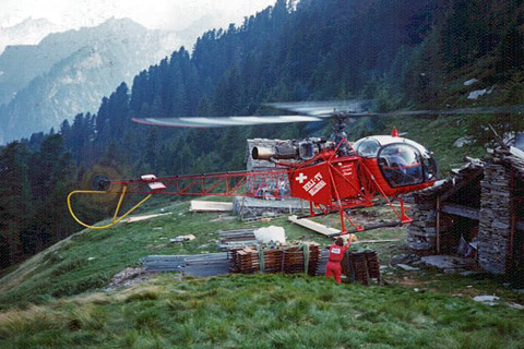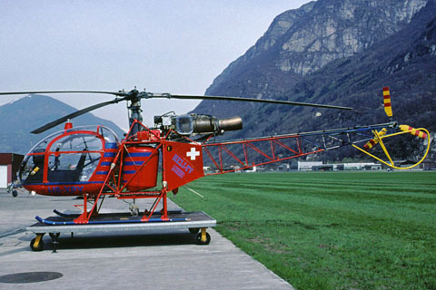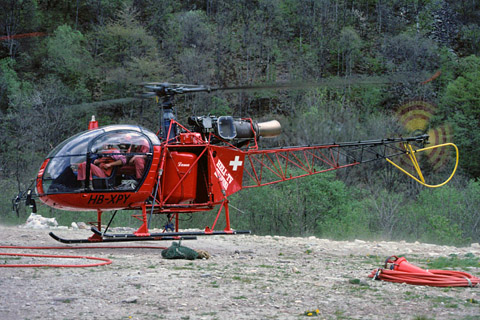 HB-XPY of Heli-TV SA at work on an alp in Ticino - Photo Archiv Micele Ceresa © 1989 | HB-XPY of Heli-TV SA during a working day at Frasco - Photo by Markus Herzig © 16-May-91 |