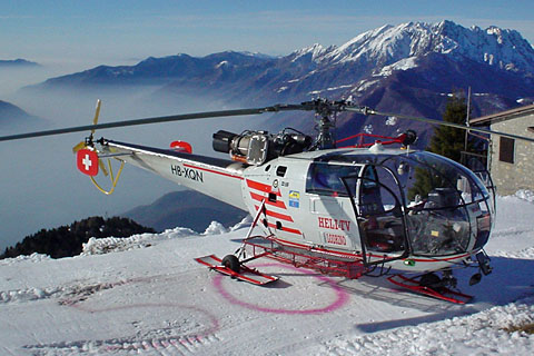 HB-XQn of Heli-TV in perfect sunlight at Lodrino - Photo by Damiano Gualdoni © 27-Aug-04 | HB-XQN on a rescue flight to a ski accident at Bosco Gurin - Photo by Damiano Re © 30-Dec-04 |