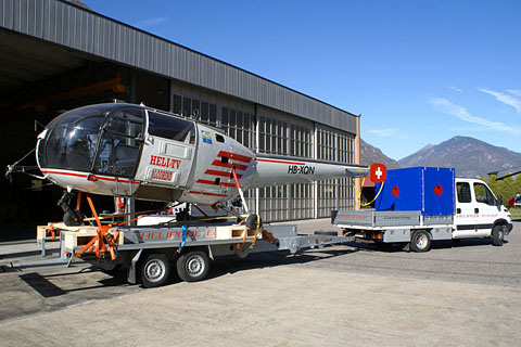 HB-XQN on the Helipool Europe trailer at Lodrino - Photo by Daniel Hofer © 1-Oct-09 | Former HB-XQN in full Air Glaciers colors - a rare sight at Hamar - Photo by Ola Furulund © 3-Oct-13 |