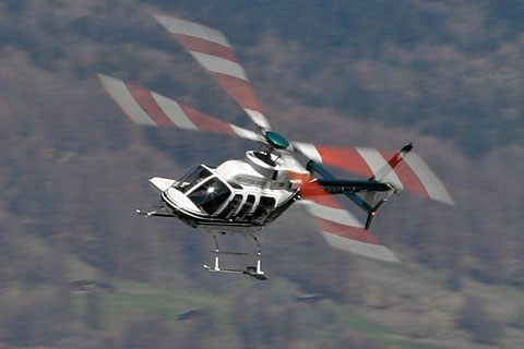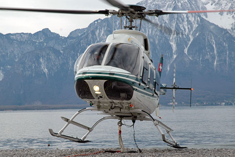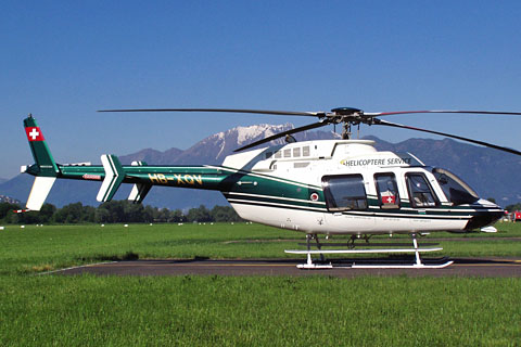| HB-XQV of Hélicoptère Service SA turning into final at Sion - Photo by Markus Herzig © 24-Mar-04 | HB-XQV of Hélicoptère Service SA at sunny Locarno - Photo by Damiano Gualdoni © 19-May-04 |