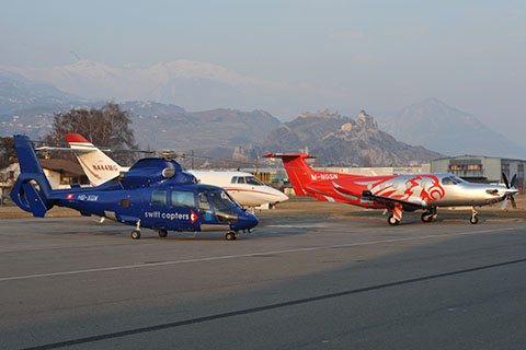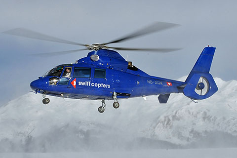 HB-XQW of Swift Copters SA at Sion airport - Photo by Joel Bessard © 12-Feb-12 | HB-XQW of Swift Copters SA at Courchevel - Photo by Peter Zurniwen © 13-Jan-15 |