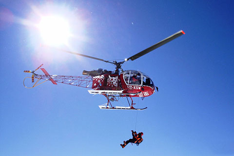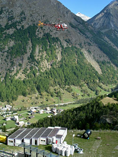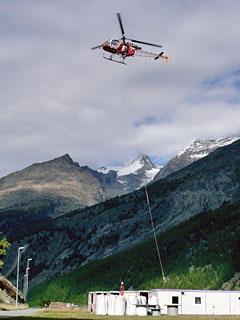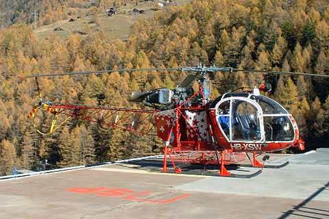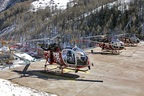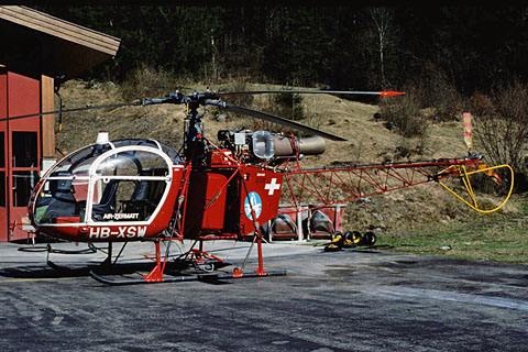 HB-XSW, HB-XII and HB-XFX of Air Zermatt AG at the homebase - Photo by Hans Zurniwen © 8-Apr-04 | HB-XSW of Air Zermatt AG working at Saas-Fee - Photos by David Parel © 30-Sep-05 |
