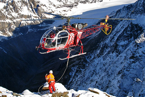 HB-XSW of Air Zermatt AG at Hockenhorn for installation work - Photo by Thomas Rentsch © 16-Nov-06 | HB-XSW during an antenna control at Sackhorn - Photo by Jürg Knobel © 19-Feb-09 |
