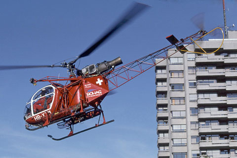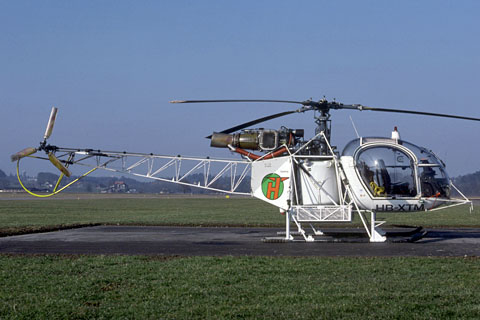 | HB-XTM of BOHAG in Helikopterteneste livery at Bern - Photo by Hanspeter Zuercher © 25-Jan-89 | HB-XTM of BOHAG in the old livery at Rosenegg - Photo by Markus Herzig © 24-Oct-91 |