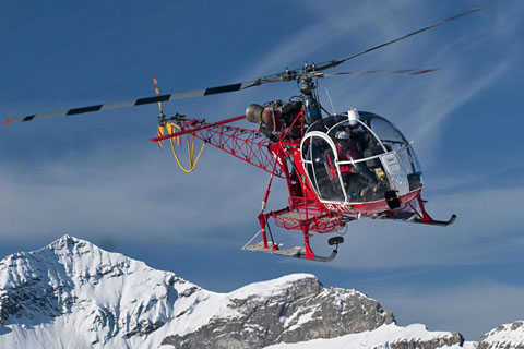 | HB-XTM of BOHAG during takeoff from Männlichen - Photo by Patrick Aegerter © 12-Feb-11 | HB-XTM of BOHAG approaching Langgletscher - Photo by Patrick Aegerter © 23-Mar-12 |