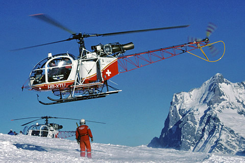 | HB-XTU of Air Glaciers SA taking off from Lauberhorn helipad - Photo by Markus Herzig © 18-Jan-97 |