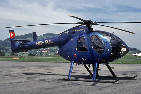 HB-XUL of Fuchs Helikopter on the ramp at Bern-Belp - Photo by Markus Herzig © 1-Jun-94 |