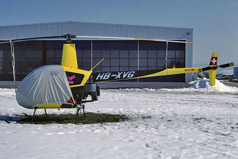 | HB-XVG of Heli de K. SA outside the hangars at Ecuvillens - Photo by Markus Herzig © 19-Feb-91 | HB-XVG of Heli de K. SA hovering at Ecuvillens - Photo by Werner Häeuselmann © 28-Jun-92 |