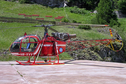 HB-XVV dryleased by Air Zermatt AG at Zermatt - Photo by Hans Zurniwen © 16-May-03 | HB-XVV of Air Grischa Helikopter AG at Raron heliport - Photo by Hans Zurniwen © Jun-03 |