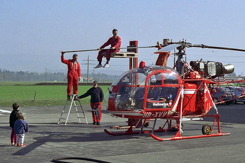 HB-XVV of Heliswiss under work at Bern-Belp - Photo by Markus Herzig © 8-Mar-97 - MHP | HB-XVV of Heliswiss at Samedan airport - Photo by Markus Herzig © 31-Jan-98 |