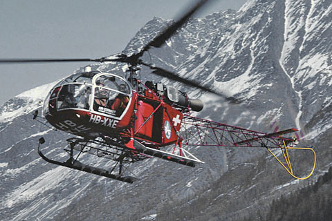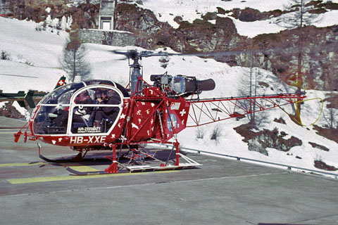 | HB-XXE of Air Zermatt AG approaching Zermatt heliport - Photo by Markus Herzig © 30-Mar-91 | HB-XXE of Air Zermatt AG in the Sion'2006 promotion livery - Photo by Hans Zurniwen © 8-Mar-99 |