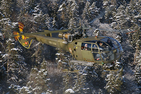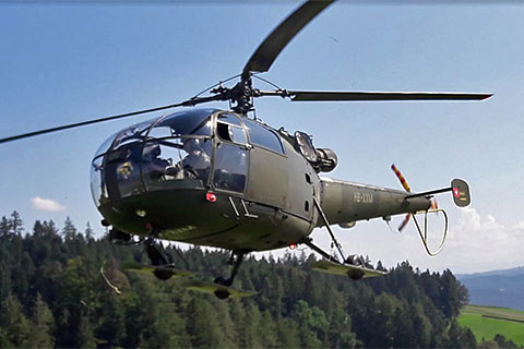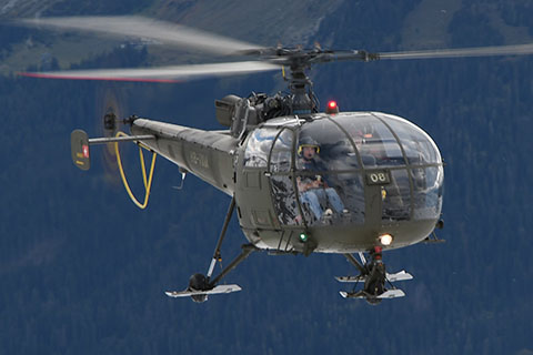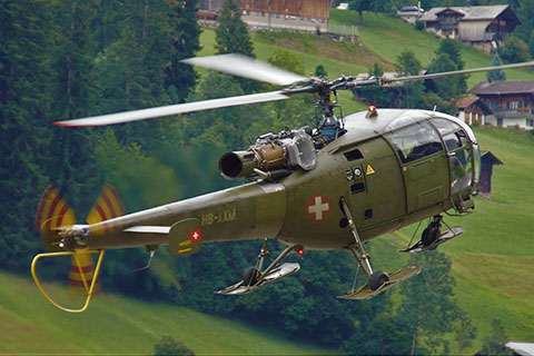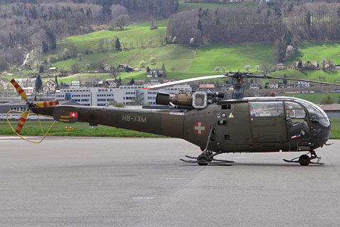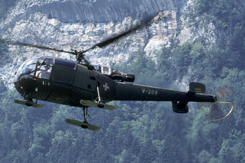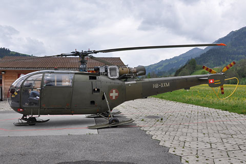 V-208 of Swiss Air Force during approach to Buochs - Photo by Markus Herzig © 2-Aug-99 | HB-XXM of Alouette Suisse AG at Bern-Belp - Photo by Pascal © 20-Apr-12 |