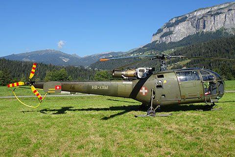 HB-XXM of Alouette Suisse AG at Zweisimmen heliport - Photo by Nick Däpp © 23-May-12 | HB-XXM of Alouette Swiss AG following HB-XYB near Bern - Photo by Stefan Bucheli © 29-Aug-14 |
