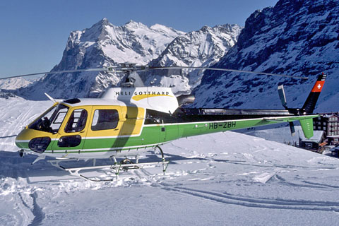 HB-ZBH of Heli Gotthard AG approaching Lauberhorn helipad - Photo by Markus Herzig © 15-Jan-00 | HB-ZBH of Heli Gotthard AG at Kl.Scheidegg with Wetterhorn - Photo by Markus Herzig © 15-Jan-00 |
