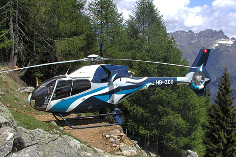 | HB-ZCG of Eliticino SA taking off from Petersgrat - Photo by Nicolas Wittwer © 14-Oct-03 | HB-ZCG of Eliticino SA at Cardada with a beautiful background - Photo by Madian Minoggio © 2004 |