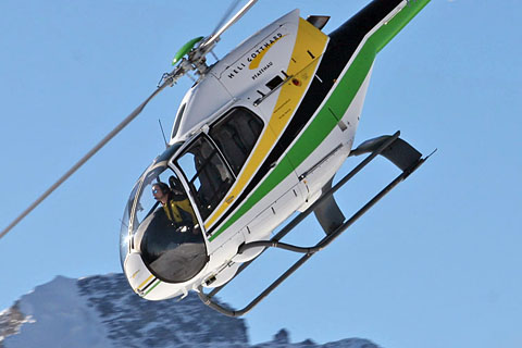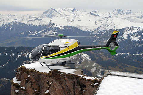 | HB-ZDS of Heli Gotthard taking off at Lauberhorn - Photo by Markus Herzig © 14-Jan-06 | HB-ZDS on a small landing pad in alps - Photo by Stefan Bucheli © 18-Nov-08 |