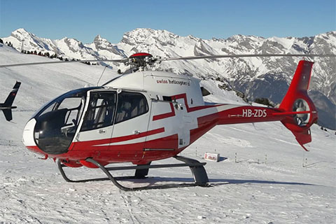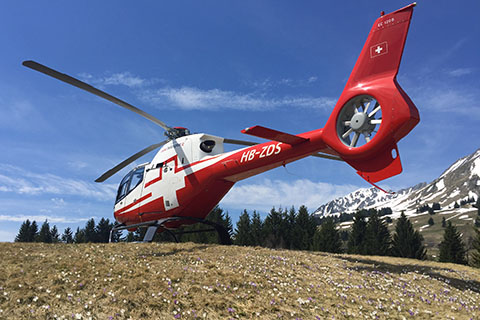 | HB-ZDS of Swiss Helicopter at Col des Mosses in spring flowers - Photo by Yvan Ansermoz © 7-May-16 | HB-ZDS of Swiss Helicopter AG at Croix-de-Coeur - Photo by Gerard Fabich © 1-Jan-19 |