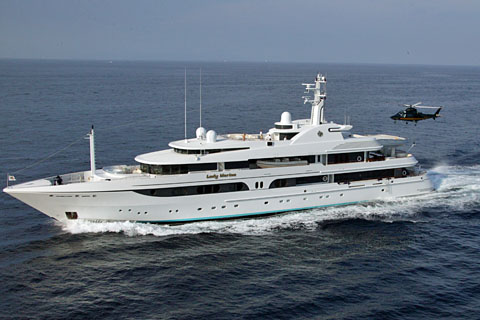| HB-ZDT on the heli platform of MV Lady Marina in Greece - Photo courtesy Gianni Testa © 10-Jun-04 | HB-ZDT of Eliticino about to land on Lady Marina off St.Tropez - Photo by Gianni Testa © 24-Jul-06 |