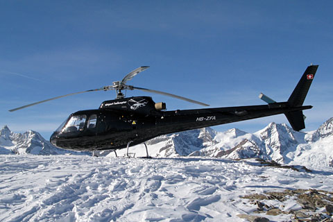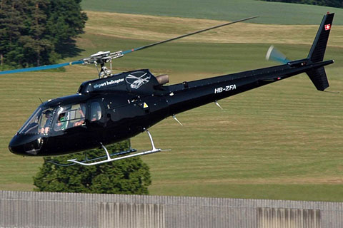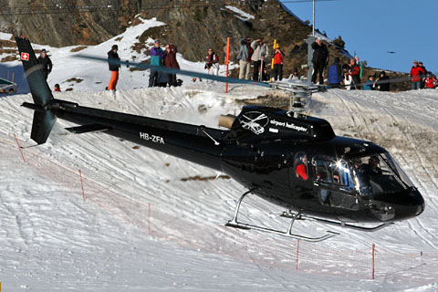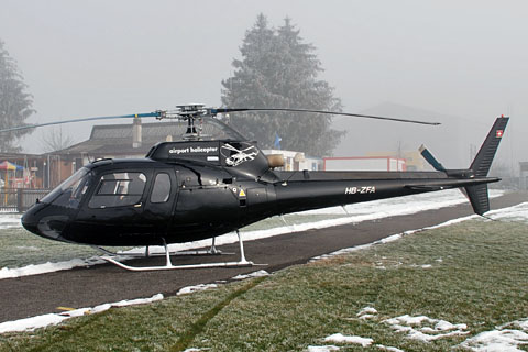 | HB-ZFA of Airport Helicopter at Beromünster in new black colors - Photo by Kurt Albisser © 14-Jun-06 | HB-ZFA of Airport Helicopter departing from Kleine Scheidegg - Photo by Markus Herzig © 13-Jan-07 |