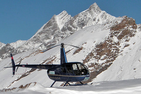 | HB-ZFQ of Heli Sitterdorf at Rothorn with Dom and Täschhorn - Photo by Raoul Perren © 4-Jan-06 | HB-ZFQ of Heli Sitterdorf AG ready for takeoff at Gossau - Photo by Paul Ulrich © 26-Oct-07 |