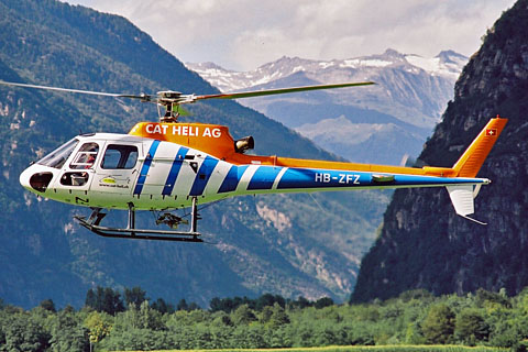 | Future HB-ZFZ as OE-OXA of Wucher Helicopter - Photo by Michael Fritz © 2-Oct-03 - ANET | HB-ZFZ of Cat Heli AG in the approach to Lodrino - Photo by Michele Ceresa © 13-Aug-04 |