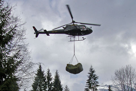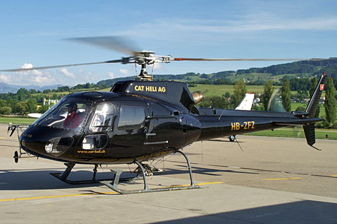 | HB-ZFZ of Cat Heli AG at Kleine Scheidegg - Photo by Markus Herzig © 15-Jan-05 | HB-ZFZ of Cat Heli AG during a transport job in a new black look - Photo by Cat Heli © 21-Apr-05 |