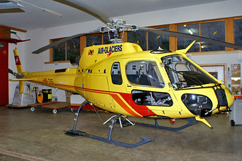 HB-ZIS of Heli Bernina is taking off from Samedan - Photo by Thomas Schmid © 21-Dec-08 | HB-ZIS of Air Glaciers at Lauterbrunnen with sistership HB-ZHY - Photo by Bruno Siegfried © 4-Jun-13 |