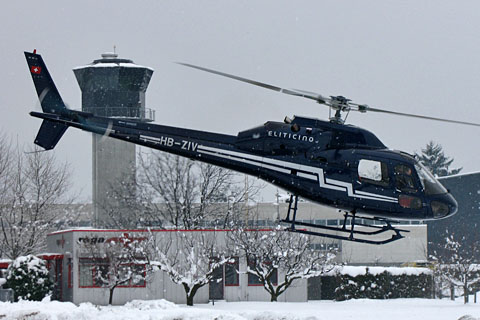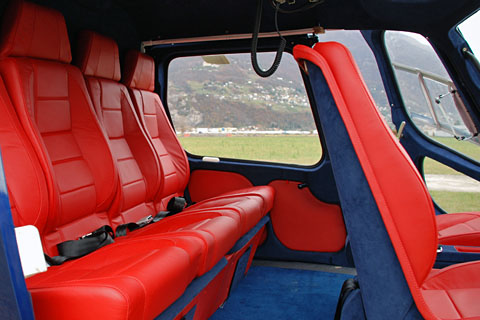 The red leather interior of AS355F2 HB-ZIV - Photo by Thomas Schmid © 21-Nov-08 | HB-ZIV of Eliticino is taking off from snowy Locarno - Photo by Fabio Morosoli © 7-Jan-09 |