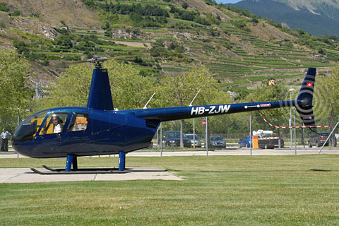 | HB-ZJW of Heli Alps at Sion just arrived on delivery - Photo by Nick Däpp © 9-Jul-08 | HB-ZJW is the 1st swiss R44 Raven II IFR Trainier - Photo by Nick Däpp © 9-Jul-08 |
