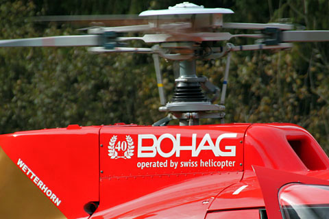 | HB-ZKT of Bohag in the approach to Kleine Scheidegg - Photo by Markus Herzig © 14-Jan-12 - MHP | HB-ZKT of Swiss Helicopter AG with a 40 years Bohag sticker - Photo by Marco Schmid © 3-Nov-12 |