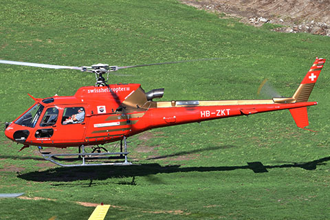 | HB-ZKT of Swiss Helicopter AG at Sierre during the Grand Raid - Photo by Thomas Schmid © 19-Aug-17 | HB-ZKT of Swiss Helicopter AG at Zermatt heliport - Photo by Peter Zurniwen © 1-Jul-18 |