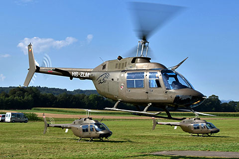 | HB-ZLM of Bruno Matt at Sitterdorf with 2 other former AAF 206s - Photo by Kurt Albisser © 8-Aug-15 |